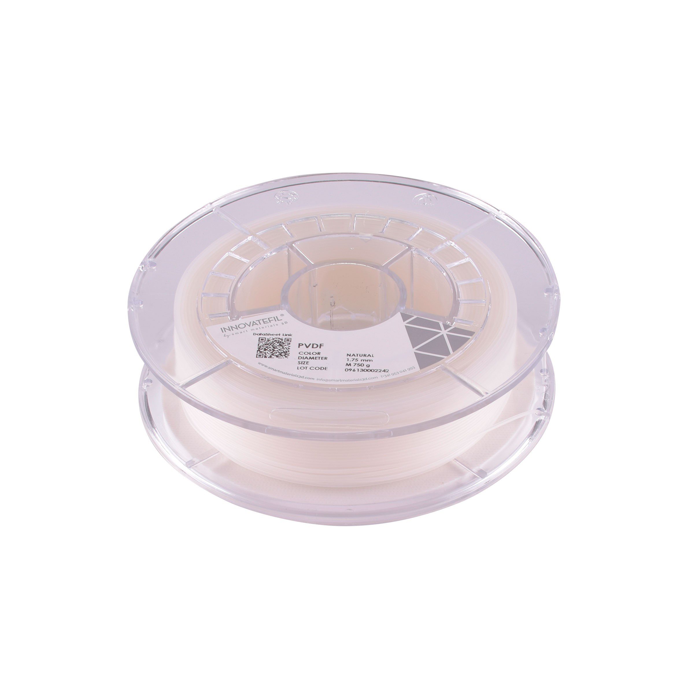Filamento PVDF con excelente resistencia quĆmica y estabilidad a la intemperie. Disponible en color Natural, diĆ”metro 1.75 mm, bobina de 750g.