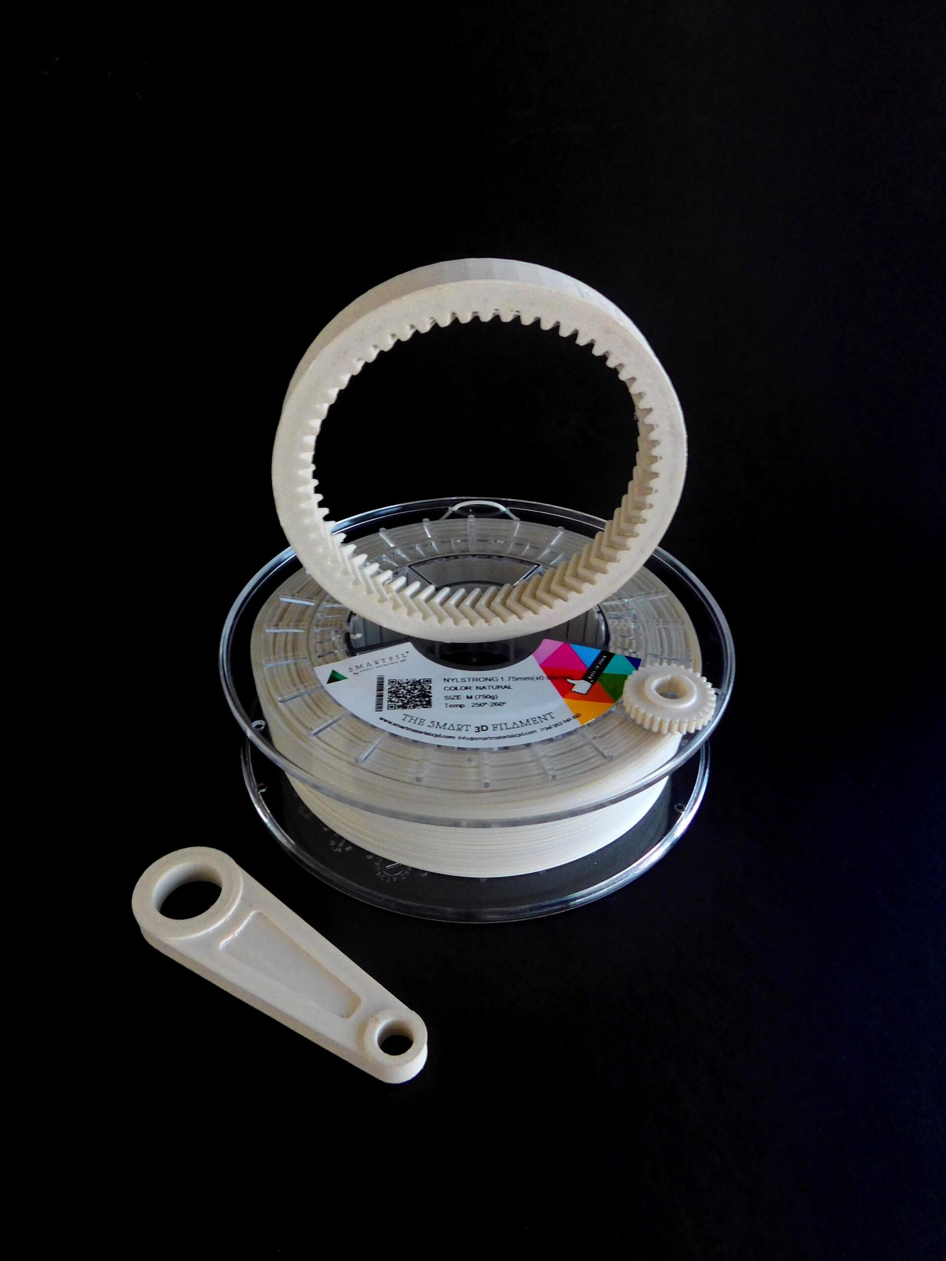 Filamento Nylon con alta resistencia mecƔnica y gran tenacidad. Disponible en color Natural, diƔmetro 1.75 mm, bobina de 750g.