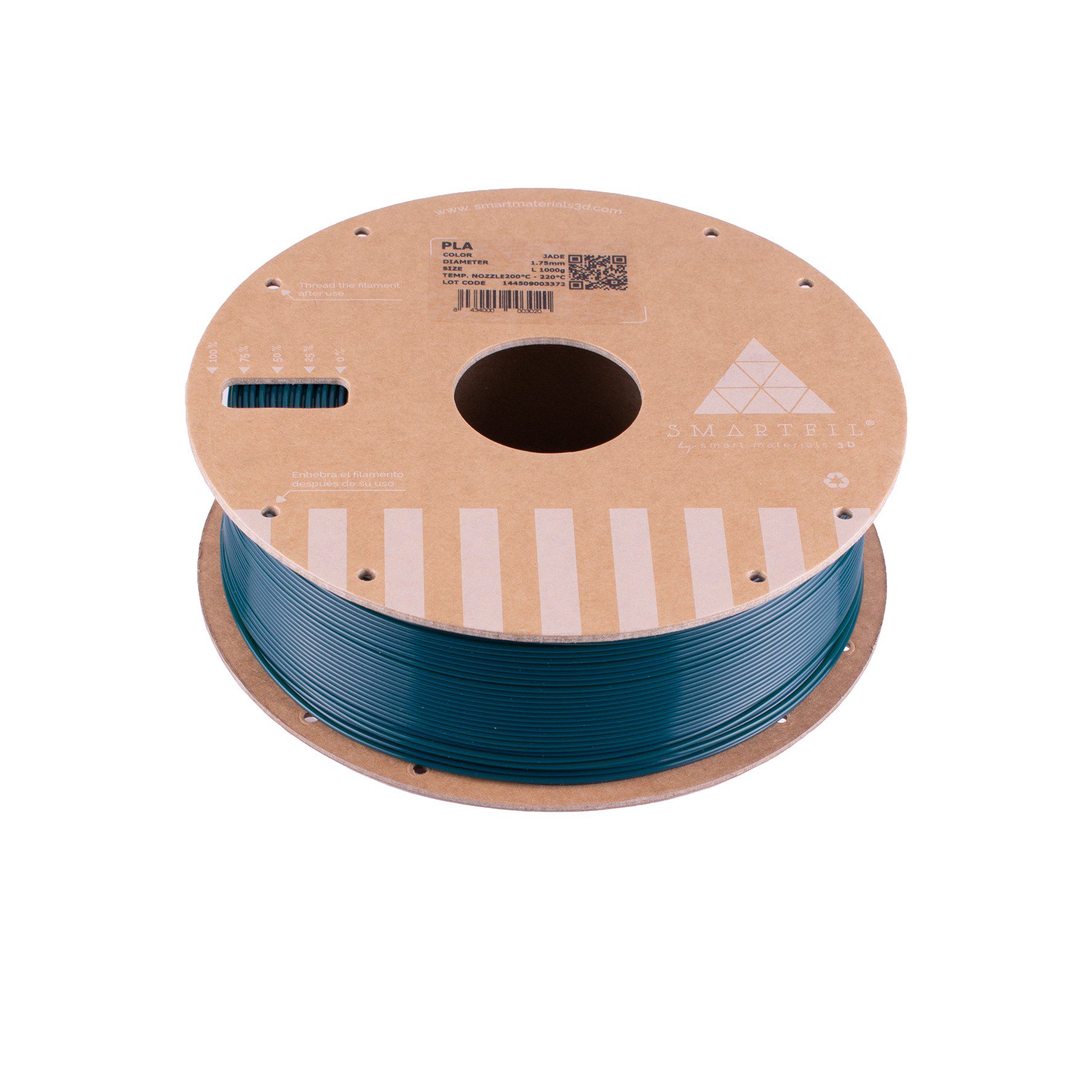 Filamento PLA (Ôcido polilÔctico) de calidad para impresión 3D. Biodegradable y fÔcil de imprimir, ideal para prototipado y piezas decorativas. Disponible en color Jade, diÔmetro 1.75 mm, bobina de 1000g.