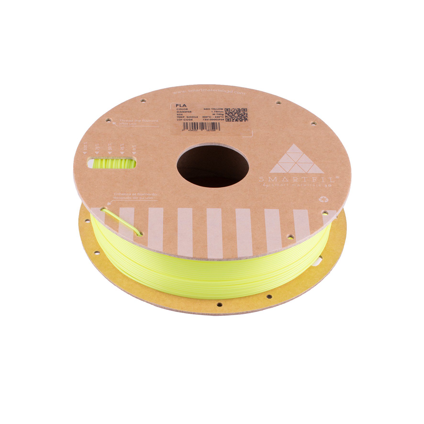 Filamento PLA (Ôcido polilÔctico) de calidad para impresión 3D. Biodegradable y fÔcil de imprimir, ideal para prototipado y piezas decorativas. Disponible en color Neo Yellow, diÔmetro 1.75 mm, bobina de 750g.