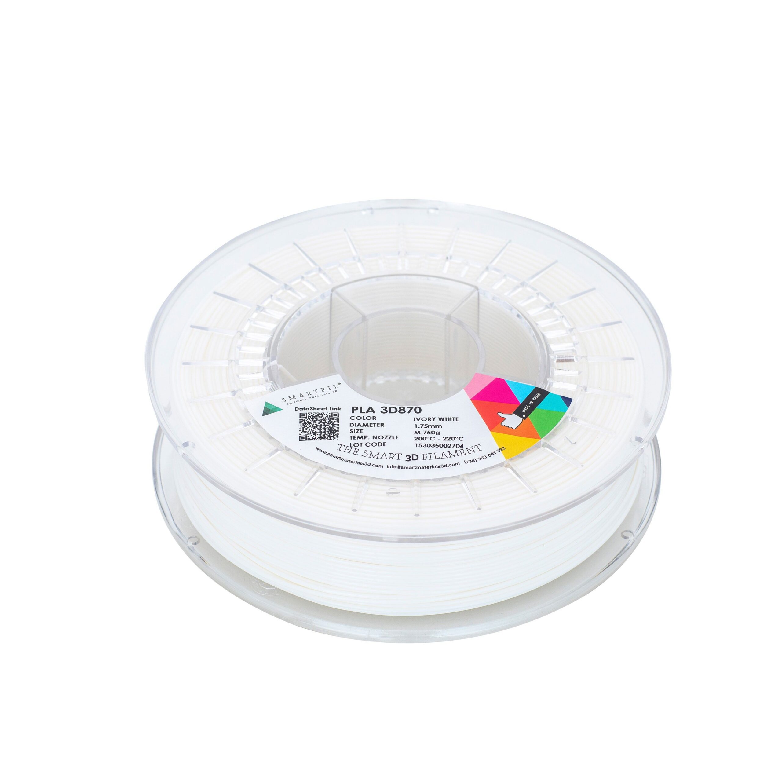 Filamento PLA 3D850 diseƱado para mayor rigidez y resistencia al calor tras recocido. Mantiene la facilidad de uso del PLA. Disponible en color Ivory White, diƔmetro 1.75 mm, bobina de 750g.