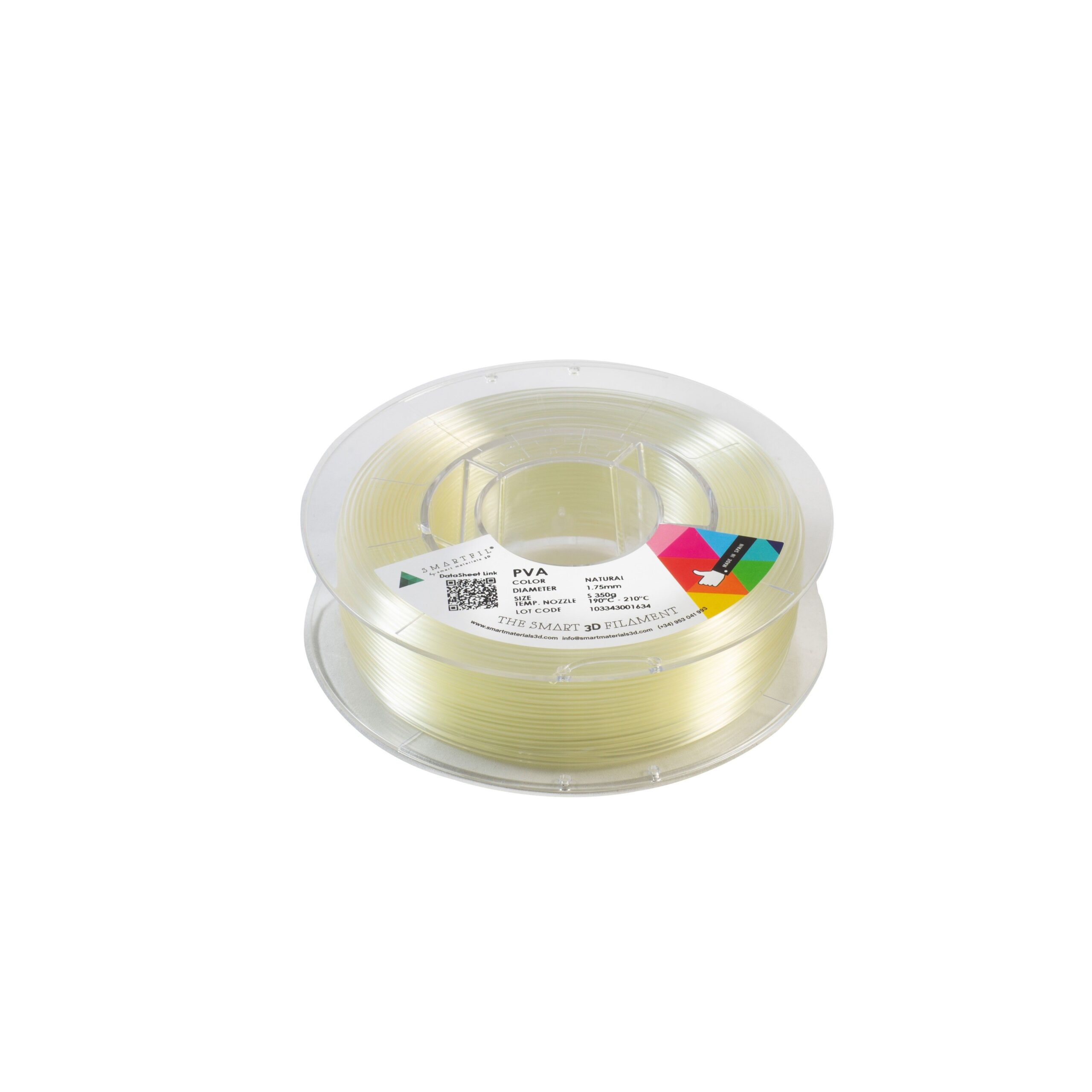 Filamento PVA soluble en agua para soportes en piezas complejas. Disponible en color Natural, diƔmetro 1.75 mm, bobina de 350g.